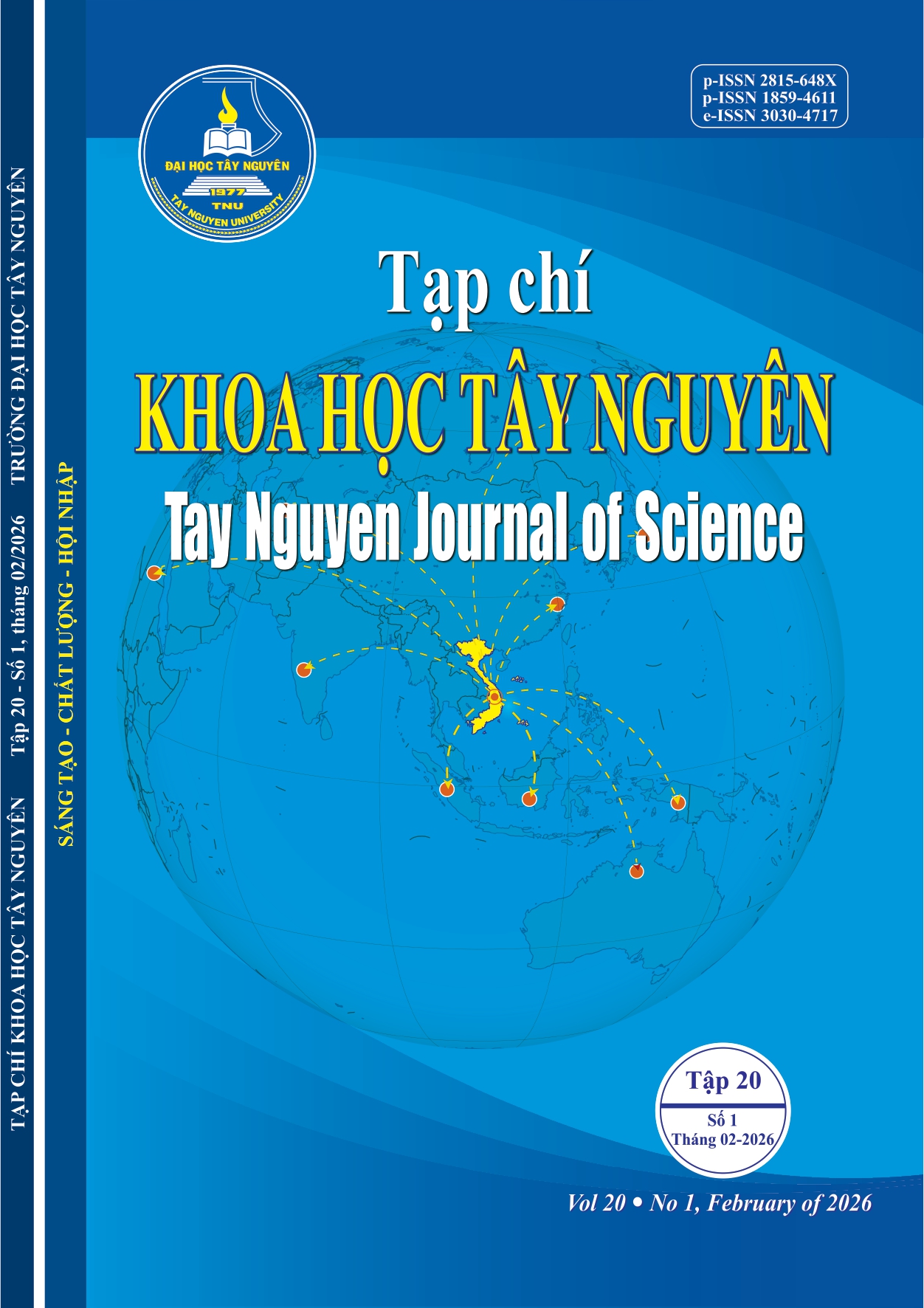 Tay Nguyen Journal of Science is a multidisciplinary journal. Our vision is to build a platform to share academic and research findings in the fields of Natural Sciences, Agriculture, Technology, Health, Education, Social Sciences, and Humanities. We look forward to receiving the attention of readers and scientists, national and international, to develop the Journal jointly.